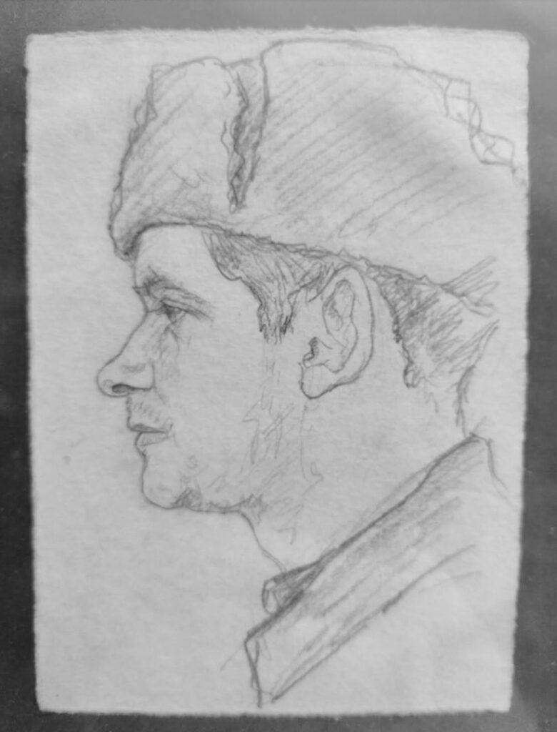Mein Vater schenkte mir diese Zeichnung, als wir über seine Kriegserlebnisse und seine Verwundung bei jenem sinnlosen „Himmelfahrtskommando“ sprachen, das ihn seinen Arm und den Freund das Leben kostete, weil der sadistische Vorgesetzte mit preußischer Moral auf die Durchführung seines Befehls bestand und mit Konsequenzen drohte.